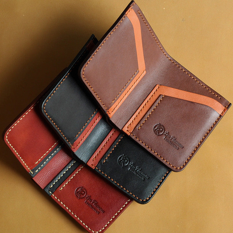 B1-BIFOLD WALLET from pure pull-up Leather 100% handcrafted in Pakistan by Lea Phenom. It is stitched with beautiful & durable imported Polister-Waxed thread. The wallet is further polished to give it a beautiful shiny look. Edges are hand-burnished to perfection.